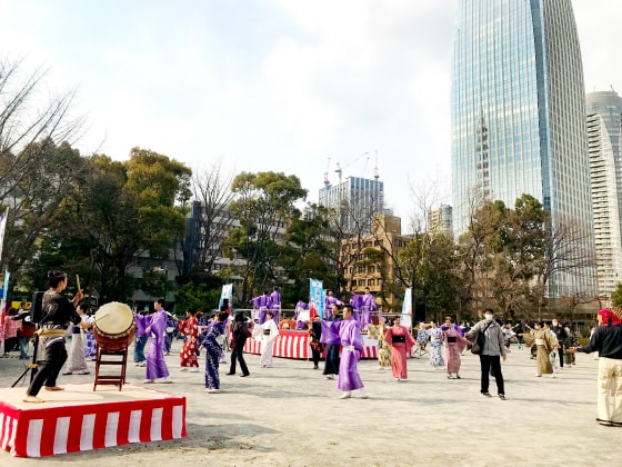 We were also surprised to learn that bon dance is very popular in Minato City. When we went to Shiba Park after finding a flyer for the "Bon Dance Festival of Local Songs Discovered in Minato City", many people gathered and danced "Shibaura Ondo", "Tokyo Gorin Ondo 2020" and others, one after another. Yukiko Kitajima, a representative of the "Bon-Odori Executive Committee that Cheers up the People and the Community" told us about the event, and later we visited a practice session. 50 to 60 people, ranging from the elderly to office workers and junior high school students, danced for two hours and a half straight.