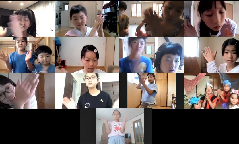 記録映像を使った復習の甲斐もあって、フラや鳳凰の舞の動きも少し入った、約5分間の振付が完成。ZOOMの画面越しではあるが、全員で最初から最後まで通して踊ることができた。