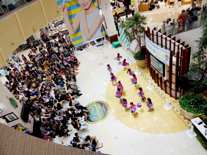 イオンモール日の出のロビーは、子供たちがダンスを披露する「広場」の役割を担う