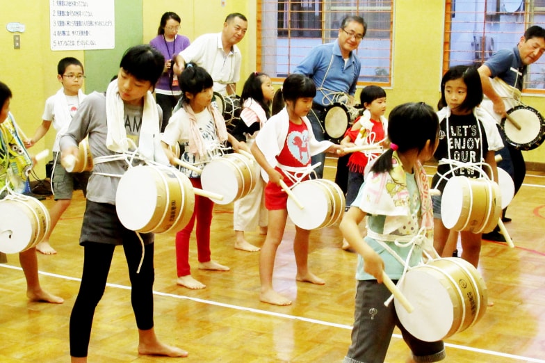 志茂町囃子保存会の皆さんは本格的な囃子の演奏付きで教えてくださった他、ワークショップに参加していた兄弟が、保存会の一員として教える側に回った。本人たちにも、また彼らから習う子供たちにとっても、新鮮な体験になったようだ。